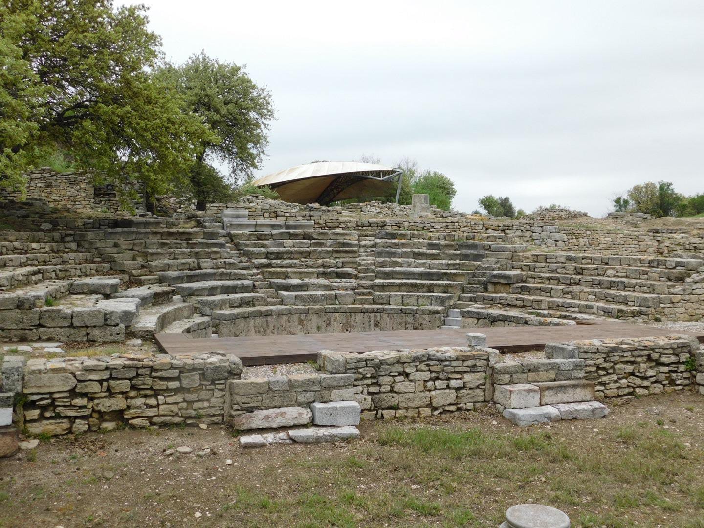 En el predio se destaca el odeón romano, reducido pero bastante bien conservado.