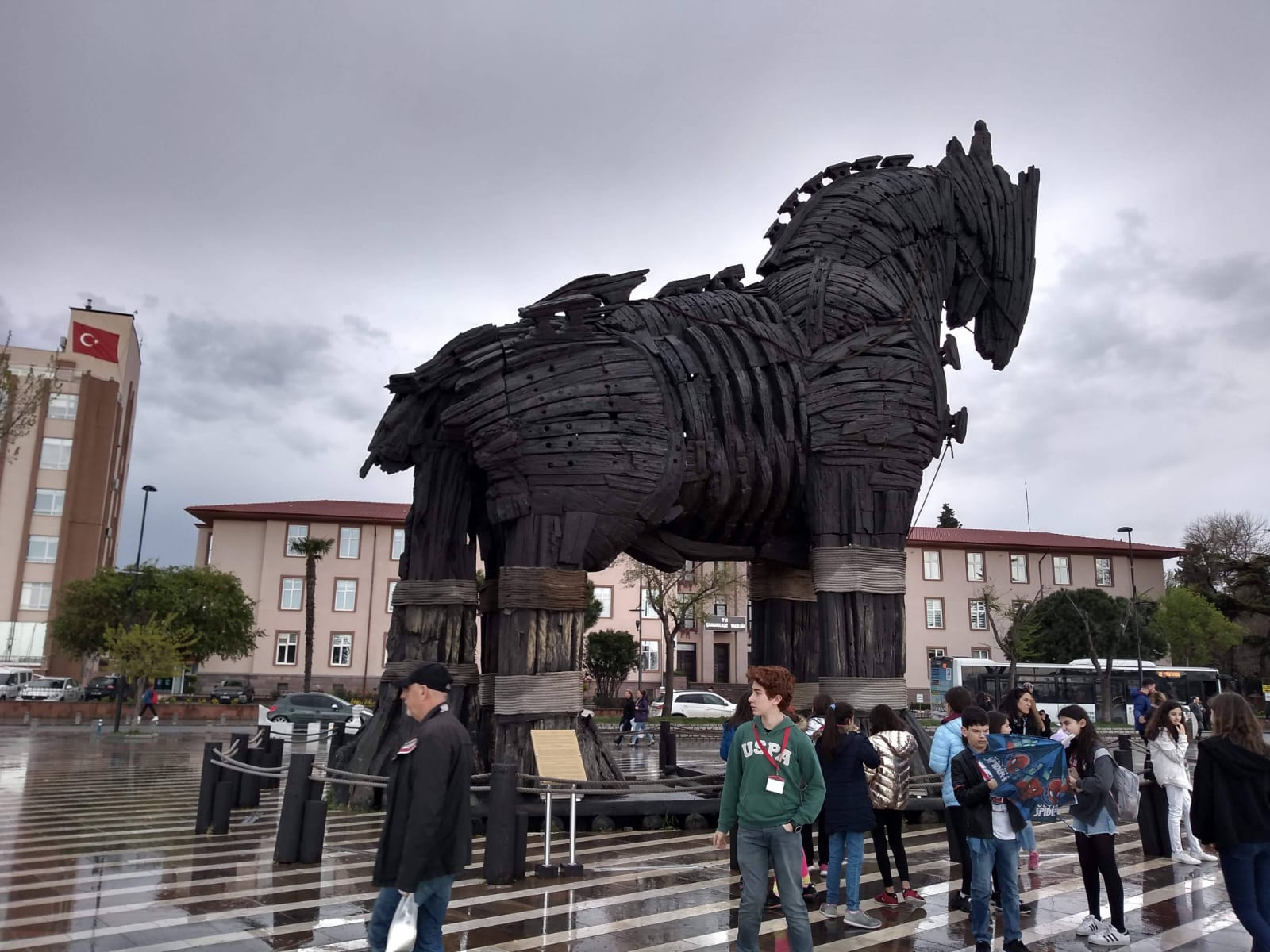 La noche previa a la visita dormimos en Canakkale, una ciudad frente al mar, con un bonito paseo marítimo donde se encuentra una réplica del caballo de Troya que se utilizó en el rodaje de la película Troya (2004), protagonizada por Brad Pitt.