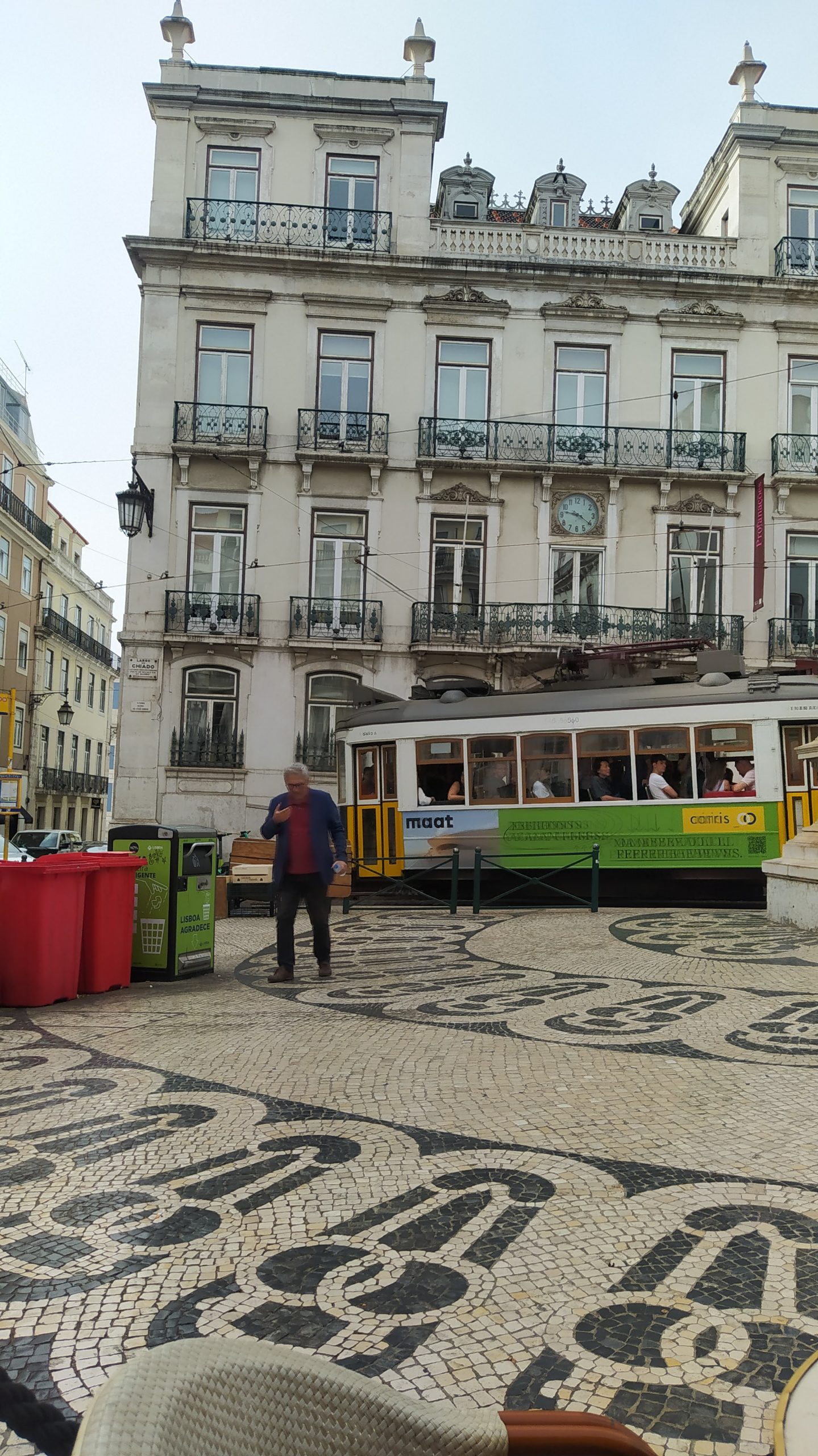 El vecindiario es maravilloso, lleno de librerías (entre ellas Bertrand, una de las más antiguas de Europa), tiendas originales, teatros y cafeterías como el famoso Café a Brasileiro. Allí desayunábamos cada mañana viendo pasar los míticos tranvías amarillos y a los turistas sacarse fotos con la estatua de bronce del gran poeta, escritor y crítico literario portugués Fernando Pessoa, autor de El Libro del Desasosiego, entre tantos otros.