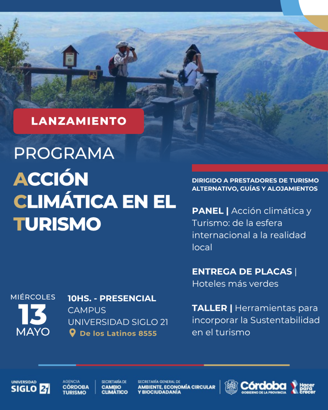 La provincia de Córdoba continúa fortaleciendo su compromiso con la sostenibilidad a través del lanzamiento del Programa ACT: Acción Climática en el Turismo, una iniciativa impulsada por la Agencia Córdoba Turismo, la Secretaría de Cambio Climático de Córdoba y la Universidad Siglo 21.